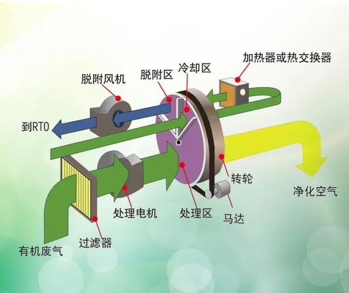 針對沸石轉(zhuǎn)輪的應(yīng)用,常見的組合工藝有沸石轉(zhuǎn)輪+燃燒系統(tǒng)(TO/RTO/CO/RCO),沸石轉(zhuǎn)輪+活性炭固定床吸附+冷凝、沸石轉(zhuǎn)輪+冷凝(NMP回收)等。